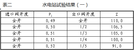 水電站試驗結果見表二和表三: